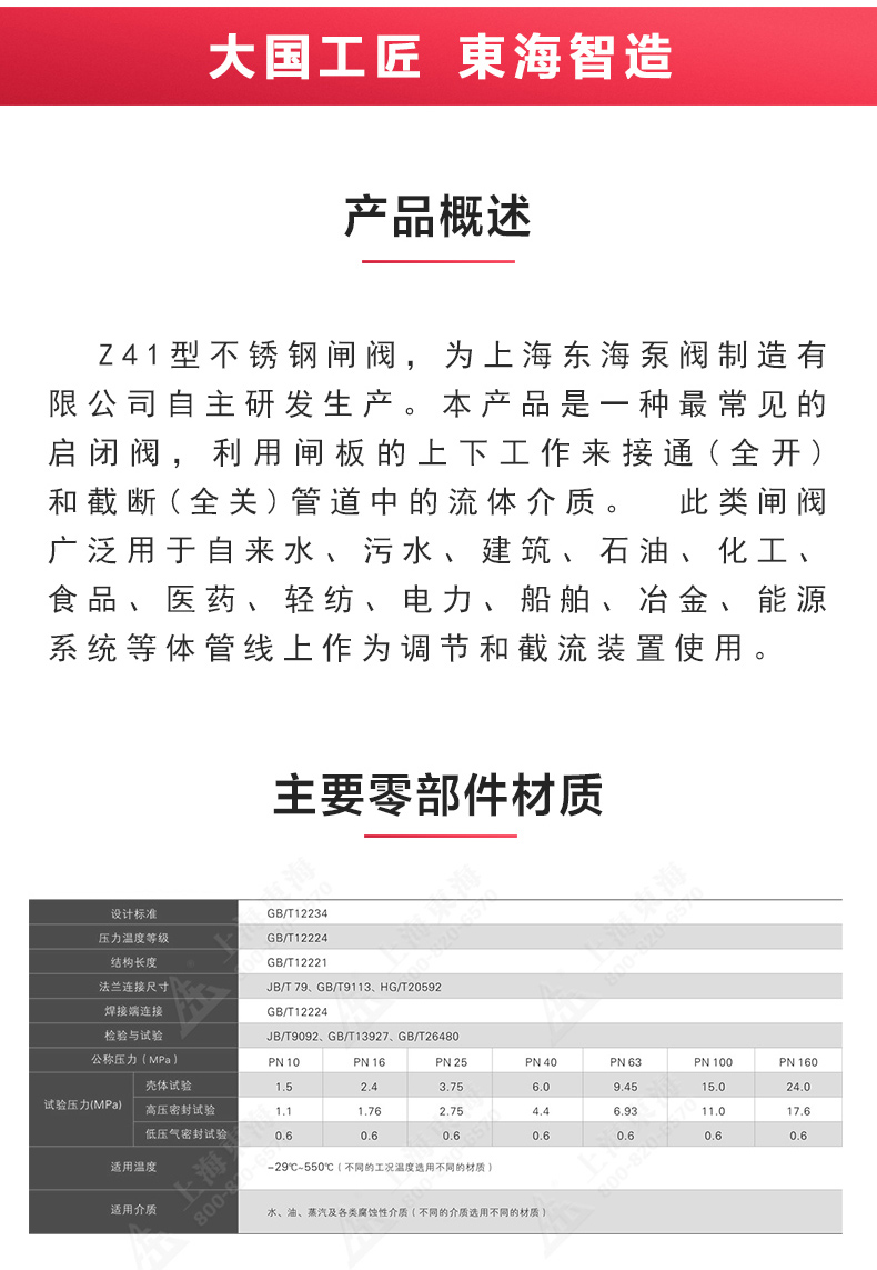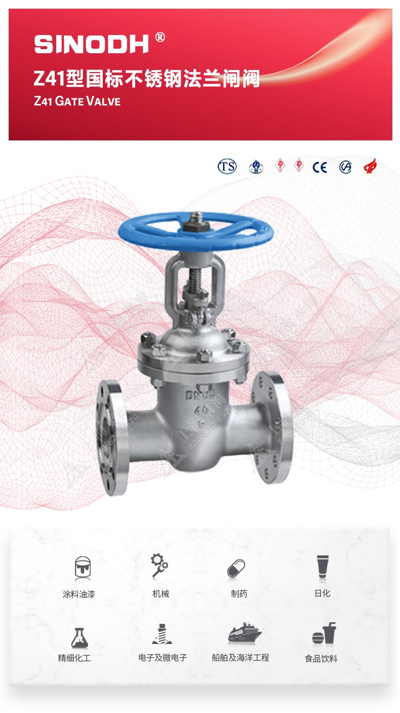 Z41型不锈钢闸阀,为天行官方自主研发生产。本产品是一种最常见的启闭阀,利用闸板的上下工作来接通(全开)和截断(全关)管道中的流体介质。此类闸阀广泛用于自来水、污水、建筑、石油、化工、食品、医药、轻纺、电力、船舶、冶金、能源系统等体管线上作为调节和截流装置使用。